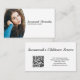 This business card design features a photo placeholder with template name and occupation. The back includes coordinated design and colours with text fields for the business name, details and qr code. Replace the placeholder photo with your vertical format photograph on the front and your QR code on the back. Fill in the personalise fields or click customise to select a font style, size, and colour you like. Have the QR code link send potential clients to your website, client reviews, project photos or another specific link.The placeholder photo is courtesy pixabay.com.