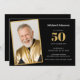 Simple Custom Photo Black Gold 50th Birthday Party Invitation
