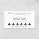 A simply designed customer loyalty punch card in black and white. Update the promotion text for your desired offering. Generate more sales and visits by encouraging your customers to return for a discounted service or free product. Great for hair salons, nail artists, retail shops, cosmetologists and more. © 1201AM CREATIVE