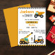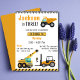 Celebrate your child's special day with this delightful construction-themed 3rd birthday invitation. Featuring a vibrant yellow and orange colour scheme, the design showcases fun and detailed illustrations of construction trucks, including a dump truck, crane, and forklift. The playful font and construction-related graphics, such as caution tape and road stripes, add a touch of excitement and creativity to the invite. This fully customisable invitation clearly outlines the party details, making it easy for guests to join the crew and celebrate. Perfect for any young construction enthusiast, this invitation sets the stage for a memorable birthday party. Order now to ensure your little builder's big day is a hit! Thank you for stopping by. If you have any doubts regarding customisation pls message me here or contact me at arteartz0588@gmail.com.