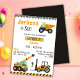 Construct an unforgettable birthday bash with this engaging construction-themed invitation! Perfect for any young builder turning six, this invitation features a bold number "6" paired with a cheerful dump truck illustration, setting a playful tone for the celebration. The birthday child's name is highlighted in an eye-catching font and the party details are clearly laid out, with the date and time emphasized in striking orange and black. A festive construction tape pattern lines the bottom, ensuring all the essential information stands out. Additional construction vehicles, such as a crane and a forklift, are illustrated at the bottom, enhancing the theme. The subtle background details, like a tire tread pattern at the top, further tie in the construction theme without overwhelming the main elements. The back of the invitation is solid black, providing a sleek and polished finish that complements the vibrant front design. Order now to ensure your child's birthday is a construction-themed celebration to remember! Thank you for stopping by. If you have any doubts regarding customisation pls message me here or contact me at arteartz0588@gmail.com.