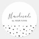 This modern handmade/homemade package sticker features a cute heart pattern with custom text. You can personalise the text with your business information. This simple sticker will add a special touch to your product packaging.