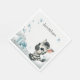Cute baby shower or birthday paper napkin featuring adorable little male zebra sitting on the clouds with some blue love hearts