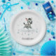 Cute baby shower or birthday paper plate featuring adorable little male zebra with some blue love hearts