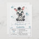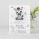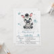 Cute boy baby shower invitation featuring adorable little male zebra with some blue love hearts