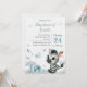 Cute boy baby shower invitation featuring adorable little male zebra with some blue love hearts sitting on clouds