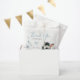 Cute favor bag featuring adorable little male zebra with some blue love hearts sitting on the clouds