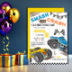 Rev up the excitement for your child's birthday with our "Monster Truck Bash 2nd Birthday Invitation!" This is perfect for young monster truck enthusiasts, featuring dynamic illustrations of roaring monster trucks in action, complete with mud splashes and tire tracks. Bold and vibrant text declares "SMASH and CRASH," setting the stage for an unforgettable, high-octane celebration. The invitation is designed with a playful yet rugged aesthetic, incorporating racing elements like chequered flags and a dirt-splattered background. The prominent number "2" highlights your child's new age, while the customisable details ensure all party information is clearly conveyed. The energetic combination of blue, yellow, and black colours adds to the thrill, making this invite a real standout. Whether your party theme includes monster truck races, obstacle courses, or just a lot of fun and games, this invitation will get your guests' engines running with anticipation. Perfect for any child who loves the thrill of monster trucks, this invite promises a birthday bash that's full of excitement and adventure! Thank you for stopping by. If you have any doubts regarding customisation pls message me here or contact me at arteartz0588@gmail.com.