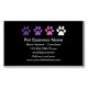Trendy cute yet simple Pet service editable business cards designed with four beautiful coloured dog or cat paw prints and simple calling card layout you can customise online. You might use these magnetic visiting cards if you're a pet care service, Veterinarian, dog trainer, or pet salon.