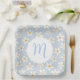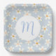 Simple Daisy Flower Blue and White Custom Initial Paper Plate