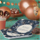 The simple dark blue with snowflakes pattern on these paper plates is perfect for a holiday party. Text can be changed. There are matching napkins available. AI assisted graphic purchased with commercial use. Artwork: FreyasDigitalCrafts