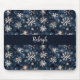 Simple Dark Blue with Snowflakes Personalised Mouse Pad
