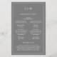 Simple gray budget Wedding Program flyer featuring a modern yet elegant design with your two letter monogram at the top and your details surrounded by a thin border. The fonts and colors may be changed in the design editing tool. The front has your order of ceremony and the back has your wedding party and thank you message. A chic and stylish design that is great for a minimalist couple. These cheap wedding programs are printed on sheets of paper for a budget friendly option.