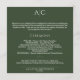 Simple Dark Moss Green Monogram Wedding Ceremony Programme