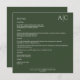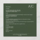 Simple Dark Moss Green Monogram Wedding Reception Menu