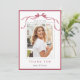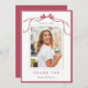 Simple Deep Blush Ribbon Bow Graduation Photo Thank You Card