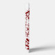 This phone case has a simple mandala design made of lines, curves, and shapes in deep red on a field of white.