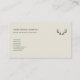 A simple business card with an elegant deer antlers illustration on a cream-colored background, with deep forest green texts. The design balances rustic natural imagery with contemporary design principles, perfect for outdoor, taxidermist, hunting, outdoor-related activities, or nature-based businesses.