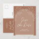 Unique yet beautiful way to send invites to friends and loved ones. This wedding invitation postcard has an arch style and features a floral design. The back of the card has your wedding announcement along with space for the recipient's name and mailing address. Shown in mocha (front and back). Just change the text to suit your needs. Use the template to personalise.