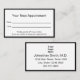This professional doctor's appointment card is double-sided. Both sides have an elegant black border. Side one says "Your Next Appointment" and has lines for the date and time of the appointment. At the bottom, there's display text you can edit to create a custom message if desired. (Shown: Kindly provide 24 hours notice if unable to keep your appointment.) A display image is above the display text on side two. You can replace the image with your logo. Side two also has display text to replace with the doctor's name (or practice name), address, and phone number. All text can be edited or deleted. The text is black.