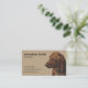 A business card is an affordable way to market your dog walker business. Five lines of text are next to the image of a dog. You can edit the text to show your name, job title, phone number, email, and website. The top line of text is in a bold font for your name. The other text is not bold. All text can be edited or deleted.