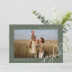 This contemporary one photo Christmas greeting card features elegant white calligraphy script typography and one photo on a rustic green background. Shop this modern holiday collection for additional stylish colours and coordinating mailing accessories.