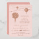 An original illustration of elegant and chic double happiness lanterns in modern simple minimalist kanji / chinese writing hanging on strings of fairy lights, on a light blush pink colour background, with real foil pressed, wedding invitation design. A stylish and classy chinese / asian / oriental themed outdoor / garden wedding design for the contemporary chinese couple.