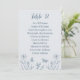 Unique simple seating chart card featuring romantic and elegant dusty blue flowers on light blue background