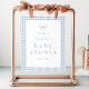 Simple Dusty Blue Gingham Boys Baby Shower Welcome Poster