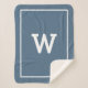 Simple Dusty Blue Initial Monogram Sherpa Blanket
