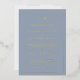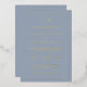 Simple Wedding Invitation featuring a modern yet elegant design with your two letter monogram at the top, a bold date layout and your details surrounded by a thin border. All design elements on the front are printed with real gold foil over a dusty blue background. A chic and stylish Wedding Invitation that is great for a minimalist couple.
