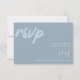 This is dusty blue Modern Wedding RSVP card with meal choice template, that will be great for any Wedding. This reply card is double sided and have monograms and wedding website (optional) on the back side. All text is editable, just click on 'Personalise this template'. You can also change background colour, just click on "Customise further".