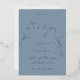 Dusty blue elegant modern wedding invitation with "the wedding of" in a beautiful calligraphy script, botanical line art illustrations and text printed in real silver foil. Dusty blue background, botanical illustrations and minimalist style for a beautiful simple and clean modern look. Please feel free to contact me for matching items.