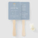 Modern, elegant, simple script dusty blue wedding program hand-fans with unique, chic gold monogram at the top. Complete your special day with delicate note of contemporary elegance!