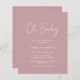 Modern dusty rose pink budget baby shower invitation featuring a simple design with "Oh Baby" in a rustic style script typography. This elegant invitation with a minimalist layout is great for a girl baby shower.