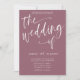 Simple wedding invitation template with elegant hand written style font in white on a dusty rose background. Customise the text to create something really unique.