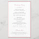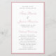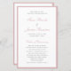 Simple budget wedding program with a thin border along with your names and headers in an elegant script in dusty rose pink. The classic, traditional layout makes this design great for a formal wedding. These cheap wedding programs are printed on sheets of paper for a budget friendly option.