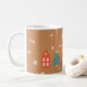Simple Merry Christmas design featuring cute houses and Christmas trees available on a two warm earth tones colour background. The classic yet delicate font gives it an earthy vintage look while keeping it cute and simple.