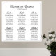This understated yet beautiful 6 table seating chart will help your guests find their tables at your wedding reception. The simple black and white design features lacy script for the names of the couple as well as the table numbers, with a thin border around the edge. Elegant and sophisticated.