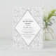 This simple yet elegant design features a light grey floral swirl pattern in the background with party details inside of a modern diamond design. All text fields are customisable.