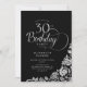 Simple Elegant 30th Birthday Black Silver Roses Invitation