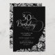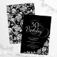 Simple Elegant 30th Birthday Black Silver Roses Invitation