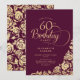 Simple elegant 60th birthday party invitation in burgundy and gold. Classy design featuring roses, faux gold foil and typography script font. Trendy invite card perfect for a stylish female bday celebration. Personalise with your own details. Can be customised to any age. Printed Zazzle invitations or instant download digital printable template.