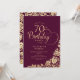 Simple elegant 70th birthday party invitation in burgundy and gold. Classy design featuring roses, faux gold foil and typography script font. Trendy invite card perfect for a stylish female bday celebration. Personalise with your own details. Can be customised to any age. Printed Zazzle invitations or instant download digital printable template.