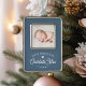 A beautiful classic design to commemorate baby's first Christmas, with a favourite photo on an inset panel. Personalise with baby's name in retro script lettering, along with the year, on a dusty blue background.