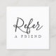 Simple square black and white referral card for beauty related professionals. Simple clean design, fully customizable.