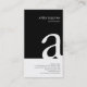 A simple, elegant and professional business card design with the top portion coloured black. Your monogram letter appears in a large font that flows into an off-white lower portion of the card. Your name and contact details appear on the right side of the card. The simple black and white design creates a highly contrasting image that is powerful and professional. Perfect for graphic, professional, design, elegant, serious themes. Customise it immediately with your own name and details.