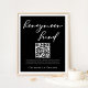 Simply chic and stylish, our minimalist winter wedding collection features elegant cursive typography for your modern event. Impress your guests with a formal evening wedding poster with simple white script on a bold black background for a honeymoon fund. Add the QR code for your website.