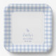 Simple Elegant Blue Gingham Plaid Boy Baby Shower Paper Plate