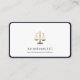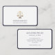 Network with confidence using our navy blue business cards adorned with a brushed gold justice scale logo featuring a simple clean white background, framed in navy blue rounded corners. These cards are crafted for attorneys, law firms, and legal professionals, offering a memorable and professional interaction.